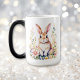 Niedliches Vintages, altmodisches Kaninchen mit rosa Blume in Aquarell von ai. Personalisierte OsterTasse.