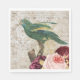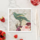 Papagei und Blume über einem Vintagen Zeitungspapier und einem weißen Damast-Akzent.