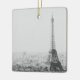 Dieses wunderschöne Ornament besticht durch einen Blick auf das Vintage Schwarz-Weiß-Foto des Eiffelturms und des französischen Paris.