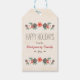 Ein eleganter und schöner Kiefernzapfen-Geschenk-Tag mit einem formalen und Vintagen Retro und antiken Anklang. Mattierte Kiefernkegel, Aquarellfarben und gestrichene Rosa, weiße und rote Weihnachtsfeiertage und Blume, schneebedeckte Eichen und Heilige Beeren bilden einen hübschen Winterlaubelkranz, der dieses hübsche Winterurlaubsschild ausmacht. Es kann mit dem Namen des Geschenkleiters, dem Jahr und der besonderen Nachricht an den Geschenkempfänger auf der Rückseite angepasst werden. Artwork © Chrissy H. Studios, LLC. Alle Rechte vorbehalten.