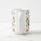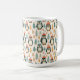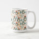 Eine Weihnachtskaffee-Tasse mit niedlichen whimsical Pinguinen Süßspeisen und Kiefern in Ziegelrot, Gold und Türkis.