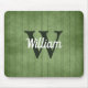 Dieses Design zeichnet sich durch ein Vintages grünes pinstripe Muster in grün mit dunkleren Streifen aus. Personalisieren Sie es mit Ihrem Monogramm Initial in dunkelgrün/off-schwarz und Ihrem Namen in weißem Retro-Skript.