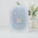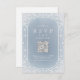 Elegantes Vintages verziertes Rahmendesign in Creme auf weichem, staubblauem Hintergrund, romantische und anspruchsvolle, großartige QR-Code RSVP-Karten für Hochzeit, romantische Hochzeit und Winterhochzeit. Sehen Sie sich alle passenden Stücke in der Sammlung an.
