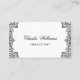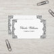 Eine elegante schwarz-weiße Visitenkarte, die Vintag und links mit antiken Dekorationen umrahmt ist. Der Hintergrund ist weiß, der Text und die Dekoration sind schwarz. Auf der Vorderseite, der Name" ist in einem eleganten kalligrafischen Skript geschrieben. Es hat einen schwarz-weißen QR-Code auf der Rückseite, bis zum links. Die elegante Golddekoration stammt aus einem Vintagen französischen Buchcover, der aus dem späten 19. Jahrhundert stammt und heute im öffentlichen Besitz von Nicolas Denis Derome (1731-1790), bekannt als Derome le Jeune, für ein Buch mit dem Titel "Gaspar Pergam Epistol" steht.