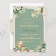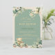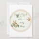 Mit dieser Vintagen Babydusche lädt ein klassischer Teddybär, der ein Retroauto fährt, zarte cremefarbene Blumen und ein fliegender Storch mit einem wertvollen Bundle zu einer zeitlosen Feier ein. Mit seinem gedämpften, grünen Hintergrund und eleganten goldenen Akzenten bietet dieses Design eine perfekte Mischung aus Charme, Nostalgie und Wärme.