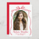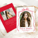 Mit dieser eleganten und zeitlosen Ankündigung des Abschlusses kündigen Sie den Meilenstein Ihres Absolventen an. Das Foto wird in einem bogenförmigen Rahmen ausgestellt, der durch einen handgezeichnet Rot-Bogen und ein Farbband auf klassisch weißem Hintergrund betont wird. Der Name des Absolventen wird in einer stilvollen, handgeschriebenen Roten Schrift hervorgehoben, und das Schuljahr und der Abschluss werden unten elegant dargestellt. Die Rückseite der Ankündigung beinhaltet ein horizontales Foto und Raum für eine benutzerdefinierte Nachricht, ideal für die Weitergabe von Dankbarkeit, Zukunftsplänen oder Party Details. Dieses raffinierte Design bietet eine moderne, aber Vintag inspirierte Art, die Leistung Ihres Absolventen der Oberschule oder Uni zu feiern!