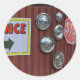 Vintager Reifenladen Klassischer Rundaufkleber.. Land, Generalladen, Reifen, Felgen, Räder, Metallschilder, Mechanik, Rot, Zaun, Holz, Vintag, geschäftlich oder privat.