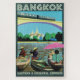 Dieses Vintage Reiseplakat, das Tourismus nach Bangkok Thailand fördert, ist digital geüberholt worden, um die ursprünglichen Farben herauszubringen, sogar besser, und so viele Unvollkommenheiten möglich regelt. Traditioneller sich hin- und herbewegender Markt Bangkoks + Buddhismus-Tempel + Moderner MRT-Entwurf.