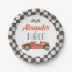 Red Vintag Race Car 3. Geburtstag Platte mit Vintagem Rennwagen.