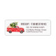 Frohe Weihnachten! Vintage rote LKW Aquarellbilder und grüner Weihnachtsbaum mit weißem Schnee auf Weiß. Perfekter Winter- und Rückadressen-Label.