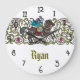 Vintager Ritter, der ein Pferd auf nette dekorative Grenzpersonalisierte Uhren reitet.