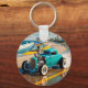 Vintager Roboter mit Surfbrett , am Strand Schlüsselanhänger