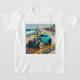Vintager Roboter mit Surfbrett , am Strand T-Shirt