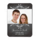 Machen Sie Ihre Hochzeitsankündigung mit diesen schicken und trendigen speichern Sie die Dattelmagnete. Das Design hat einen Hintergrund mit schwarzer Tafel mit Set in Kreide wie Stilschrift. Ihre Fotos sind mit Vintagen Rollen geschmückt. Die süßen, schlichten und nostalgisch anmutenden Magnete dienen als Erinnerung und als Erinnerung an Ihren großen Tag. Diese Save The Date Magnete passen zu den Vintagen romantischen Grauen Chalkboard Scroll Hochzeitseinladungen.