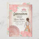 Elegante Vintage Aquarellfarben Rose Hand Fan Girl in Sequins kleiden Quinceañera Einladung Design.