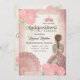 Elegante Vintage Aquarellfarben Rose Hand Fan Girl in Sequins kleiden Quinceañera Einladung Design.