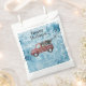 Vintager roter LKW auf blauem Schneeflockenhinterg Geschenktütchen