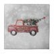 Vintager roter LKW auf grauem Hintergrund Fliese