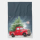 Vintager roter LKW und baumspezifischer Urlaub Geschirrtuch