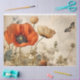 Vintager Roter Mohn und Schmetterling Botanischer Seidenpapier