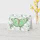 Originelles digitales Kunstwerk bestehend aus Vintagen Textilien aus der Zeit des Dekos, neu erschaffen und von mir in einem minzgrünen Hintergrund für eine Vintage Schmetterling-Silhouette, auch in Grün. Diese hübsche Karte ist innen leer, sodass es viel Platz für einen Brief oder eine persönliche süße Stimmung.