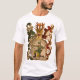 Vintage deutsche Illustration mit einem Schild mit einem Schützen, der in einem Wappen aus Rot, Grün und Gold zeichne, und einem blühtest Federn.