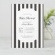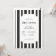 Klassische, zeitlose schwarz-weiße, senkrechte Bonbonstreifen-Baby-Show-Einladung. Individuell anpassbare Schriftart Stile und Layout, mit einem einfachen gemusterten Hintergrund mit einem sauberen, geometrischen Streifen Muster. Perfekt für unisex Baby Dusche lädt ein, Baby Dusche einlädt ein und Retro Baby Dusche lädt ein. Dazu: Elegante schwarz-weiße Babydusche, klassische gestreifte Babydusche, minimalistisches Baby-Duschdesign, moderne, geschlechtsneutrale Babyduschkarte, monochrome Babydusche, zeitlose Schwarz-Weiß-Einladung, schicke und raffinierte Babydusche, traditionelle Babydusche-Ankündigung, stilvolle formelle Babydusche, einfache und elegante Dusche-Einladung, ftenkühne, gewölbte Stripmuster-Muster-Design-Design-Einladung, neutrale Babydusche-Babydusche, neutrale Babydusche-Dusche-Dusche.