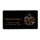 `Dies ist Weihnachts-Feiertag Rückkehr-Adresse Label Design. Dieses Design-Feature ist ein handgeschriebener goldfarbener Schriftart mit Scrollrahmen Akzenten auf einem schwarzen Brett, Kreidebrett weicher Stil Hintergrund mit einem rustikalen strukturierten Look. Benutzerdefinierter Rücksendeadresse Personalisierte Adressetiketten für alle Ihre Mailings.