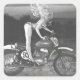 VINTAGER SCRAMBLER UND HEISSES MODELL. QUADRATISCHER AUFKLEBER