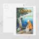 Diese Postkarte ist eine Reproduktion eines altmodischen Reiseplakats für den Südpazifik, der den Tahoe-See propagiert.