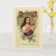 Schönes Vintages traditionelles Bild von St. Therese gerahmt mit Weihnachtsstechpalme und -beeren.