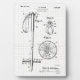 Die Kunstplakette Tabletop zeigt Vintage 1934 Skipole-Patentschrift. Gezeichnet Overlay auf Vintagem Rasterpapier-Hintergrund