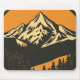 Ein Vintag inspiriertes Design mit einem majestätischen Berggipfel, der im warmen Glühen einer untergehenden Sonne badet. Der Berg ist von einem dichten Pinienwald umgeben und schafft eine friedliche und ruhige Atmosphäre.