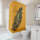 Schöne Pfauenillustrierung auf Senf gelben Vintagen Duschvorhang. Dieses elegante und raffinierte Produkt wird die Atmosphäre Ihres Badezimmers sicher steigern.