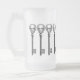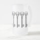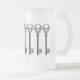 Diese mattierte Glasbier-Tasse ist eine eines eklektischen Sets Vintager steampunk Bier-Tassen und sie hat ein Bild eines skeleton Schlüssels auf ihr.