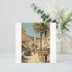 Besondere Vintage europäische Reisewerbung - Strand, Dorf, Menschen, Palmen, blaues Meer und Himmelsbild