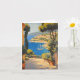 Besondere Vintage europäische Reisewerbung - Strand, Dorf, Menschen, Palmen, blaues Meer und Himmelsbild