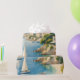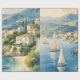 Französische und europäische Reisewerbung - Strand, Dorf, Menschen, Bäume, blaues Meer und Himmelsbild