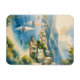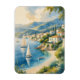 Französische und europäische Reisewerbung - Strand, Dorf, Menschen, Bäume, blaues Meer und Himmelsbild