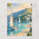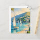 Französische und europäische Reisewerbung - Strand, Dorf, Menschen, Bäume, blaues Meer und Himmelsbild