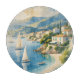Französische und europäische Reisewerbung - Strand, Dorf, Menschen, Bäume, blaues Meer und Himmelsbild