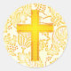 Vintager Stil Glaubenskreuz in Gelben Stickereien Runder Aufkleber