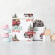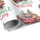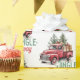 Dieses bezaubernde Weihnachtsbild im Vintagen Stil hat einen Retro-roten LKW, immergrüne Bäume und den Text Jingle.