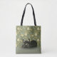 So eine hübsche Tasche für den Katzenliebhaber in deinem Leben! In den Pastellfarben Blau, Grün und Creme befindet sich im Hintergrund ein Jugendstil-Blumenmuster, im Vordergrund steht eine süße schwarze Katze. Der untere Teil des Designs ist pastellblau mit einem Leinen-Overlay. Das Muster wird auf der Rückseite umgekehrt, sodass die Kätzin auf der anderen Seite steht und das Muster an den Seitennaht genau übereinstimmt.