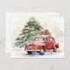 Vintager Stil Rote Auto und Weihnachtsbaumgrüße Postkarte