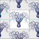 Vintager stilisierter Oktopus Zeichnend #8 Blau Stoff