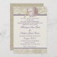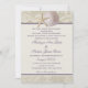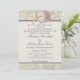 Vintage Beach Hochzeitseinladung mit Elfenbeinhintergrund, Elfenbeinspitze und lila Soft-Text. Sand Dollars und Seesterne und das rustikale Aussehen von Burlap, personalisieren Sie Text und Schriftart, um Ihren Stil Anzug.