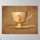 Schönes, blumengeschmücktes Vintages Teacup und Untertasse auf texturiertem, gealterten Plakatdruck.