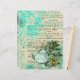 Hübsche Vintage Collage mit minzfarbener Teekopfillustrierung mit Blattwerk und grünem Schmetterling auf pastellgelbem Aqua Not leidender ephemera Hintergrund