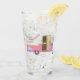 Vintager Trailer mit rosa Shirt Glas